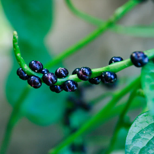 Malabar spinach can be grown from seed. To start from seed, plant the seeds indoors 6-8 weeks before the last frost in your area. Seeds should germinate in 10 days to 3 weeks. If you want to speed up your seedling’s growth, you can either soak them in water overnight before planting, or use a knife to open up the hard exterior seed coating.