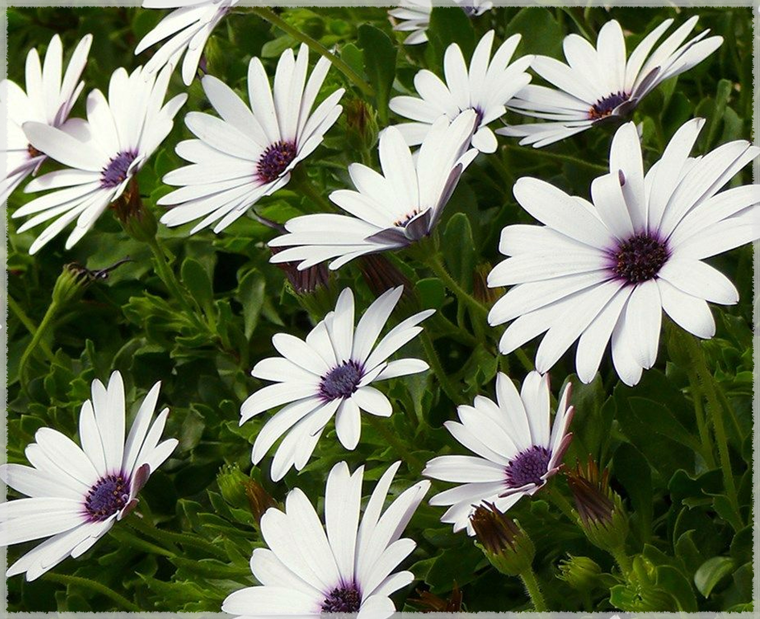 This flower is an annual with beautiful white daisy-like flowers. It can easily be grown from flowers seeds, and it prefers well-drained soil and will do best in full sun. Many people refer to this flower as Cape Marigold. The flowering plant is perfect for the home garden and is easily grown directly outdoors from flower seed.