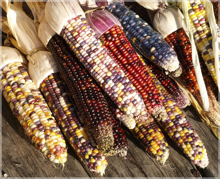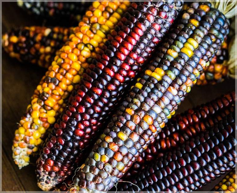 These Corn is one of the oldest varieties of corn. It is widely known as a symbol of Fall and the American harvest season. Its kernels come in a wide range of colors including white, red, yellow, brown and blue. The common nickname of “Flint” Corn is due to the kernels being known as “hard as flint” by the Native Americans. This variety is often dried and used for decoration because the soft and hard starches in the kernels helps them to shrink uniformly, retain their color and make them extremely less prone to spoiling during drying.