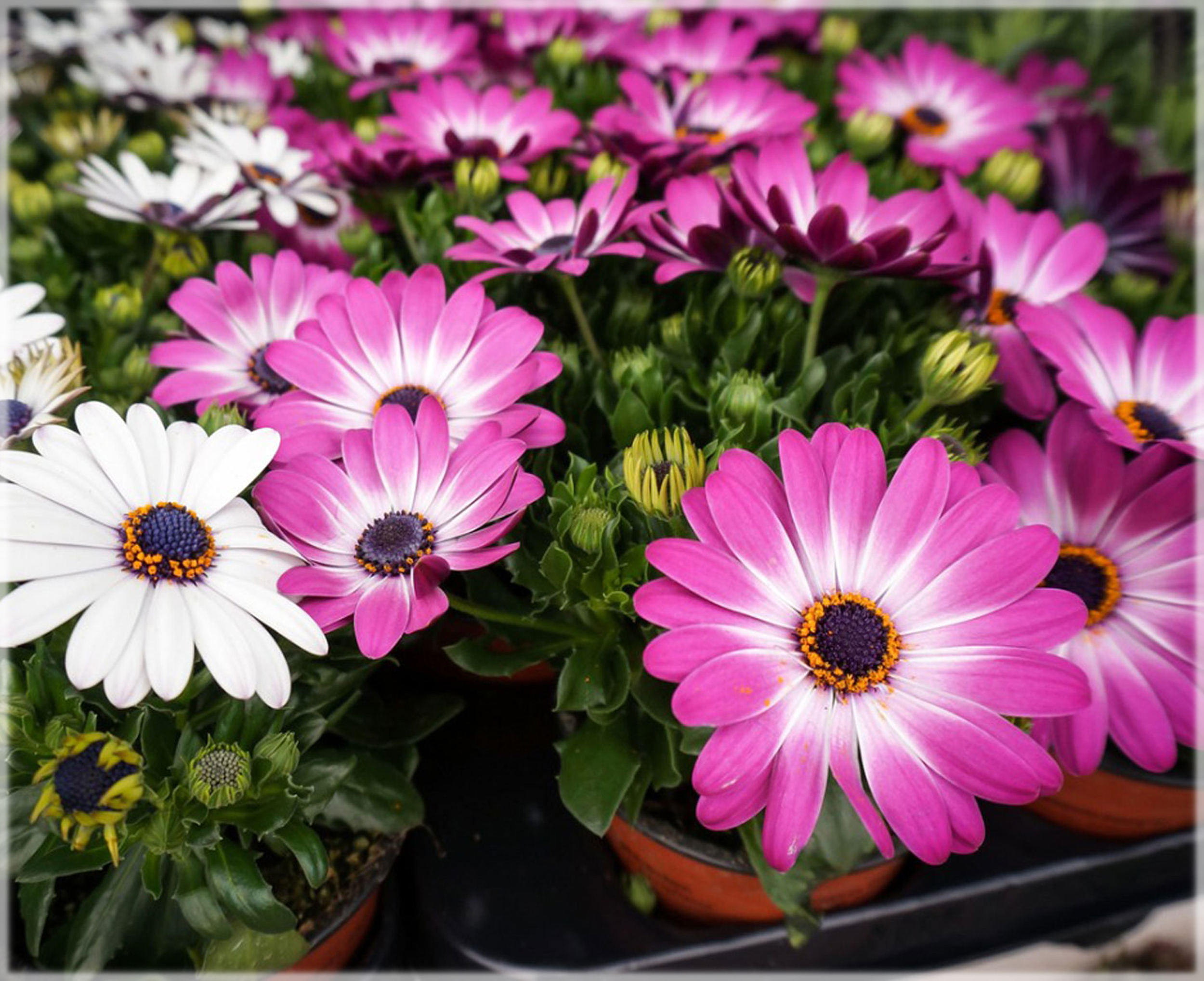Osteospermum Mix is from Africa, hence the name African daisies. Growing African daisies require conditions similar to those found in Africa. It likes heat and full sun. It has become a very popular plant for flower arrangements in the past few years.