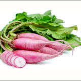 Radish is an easy to grow and quick to mature salad crop. Summer radishes are small, walnut-sized, round or cylindrical in shape and are eaten raw in salads. Winter radishes a larger and more turnip like. Like summer radish they can be eaten raw in salads or they can be cooked like a Turnip or Swede. Radish seedling leaves can also be used as cut and come again salad.